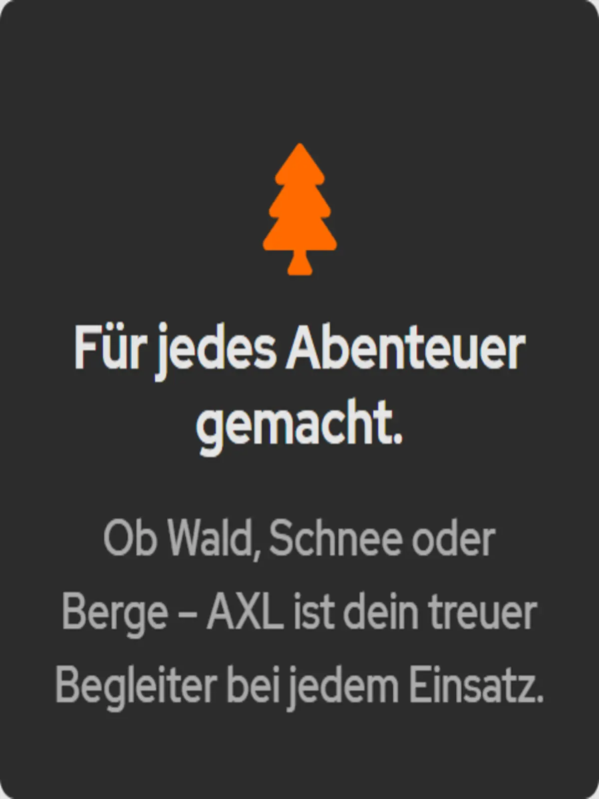 Ob Wald, Schnee oder Berge – AXL ist dein treuer Begleiter bei jedem Einsatz.