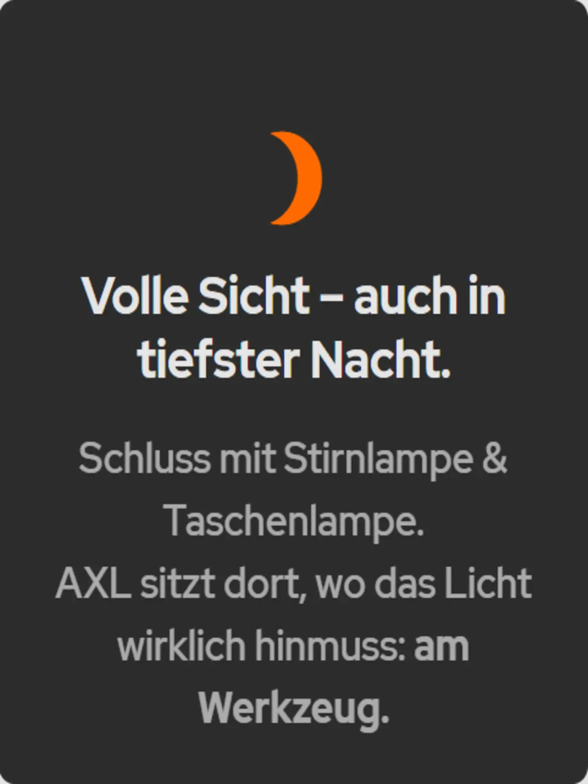 AXL sitzt dort, wo das Licht wirklich hinmuss: am Werkzeug.